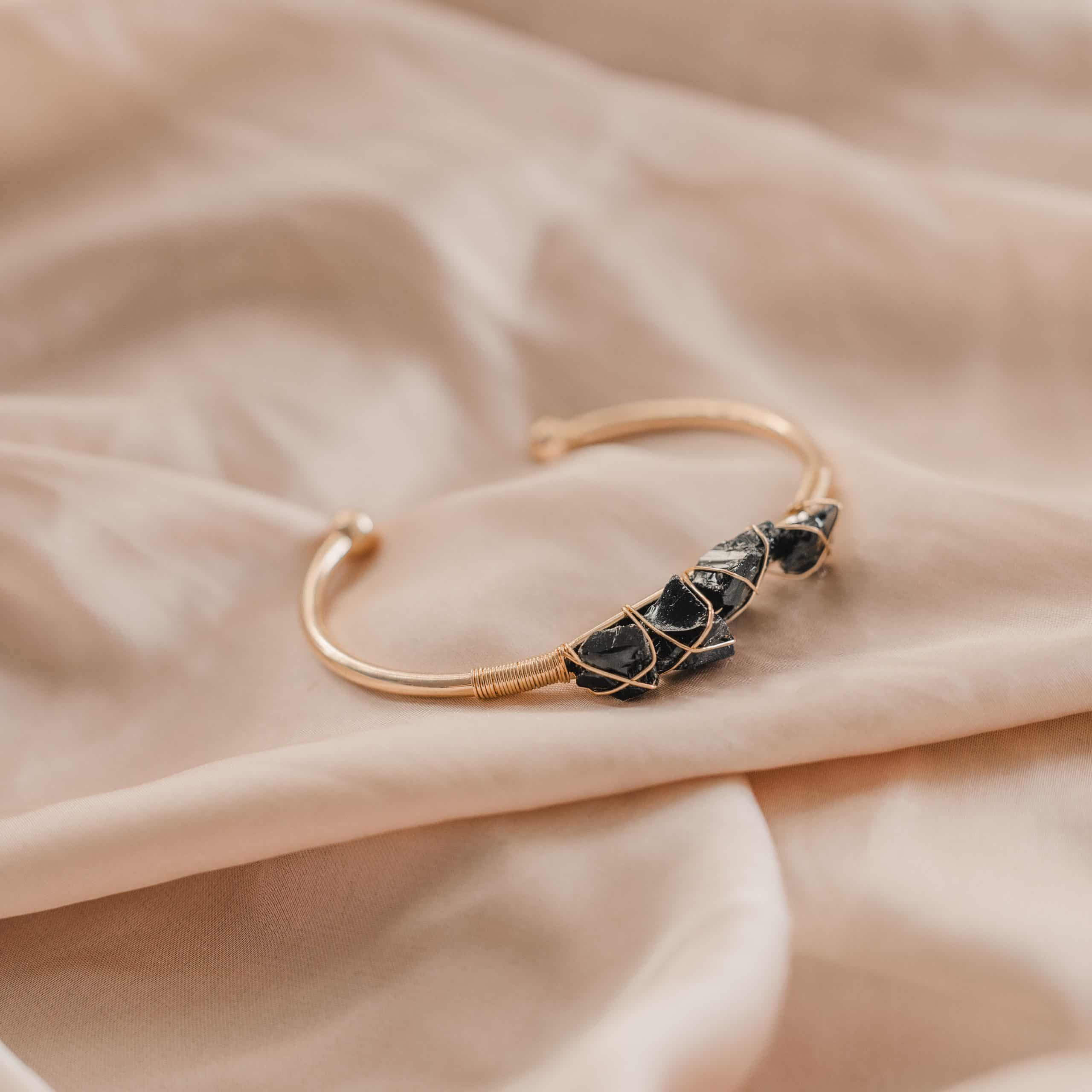 Minimalistyczna, ale pełna energii – bransoletka „Talisman Mini” z surowym czarnym turmalinem to propozycja dla tych, którzy szukają subtelnej biżuterii o wielkiej mocy. Wykonana ręcznie z dbałością o każdy detal, oprawiona w złotą stal chirurgiczną – nie uczula, nie ściera się i zachwyca trwałością.