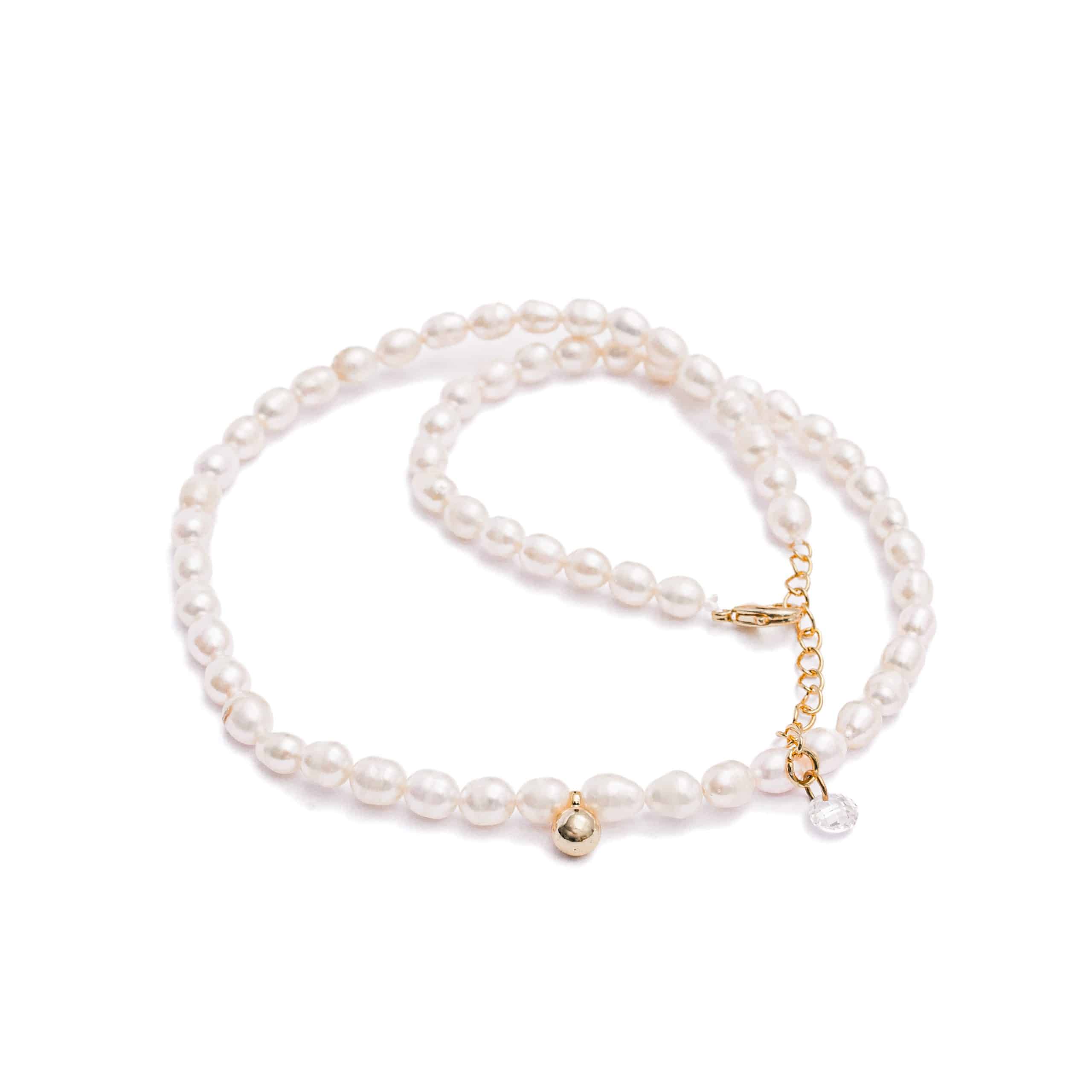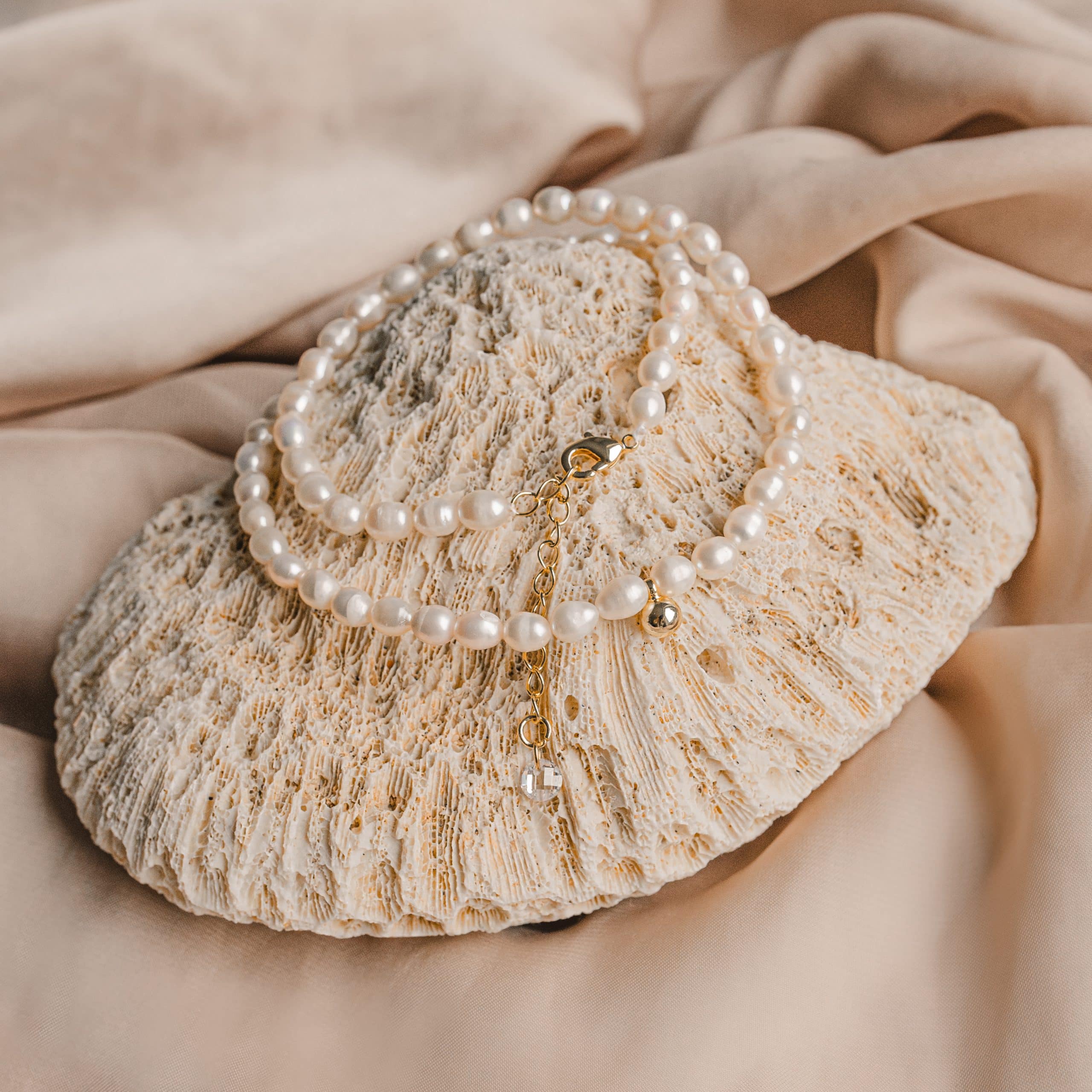 Wykonany z naturalnych pereł hodowlanych, zakończony błyszczącym kryształkiem Swarovskiego i drobną złotą kulką – zaskakuje lekkością i klasą.